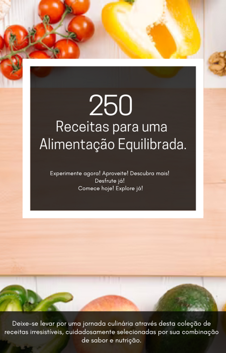 Transforme sua alimentação com facilidade! Adquira agora nosso eBook 250 Receitas para uma Alimentação Equilibrada e descubra um mundo de opções deliciosas Chamada.
